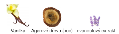 Vonné složky: Vanilka, Agarové dřevo (soud), Levandulový extrakt