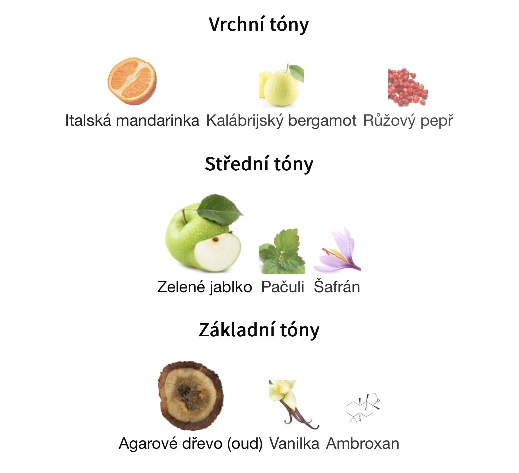 Střední tóny jsou Zelené jablko, Pačuli a Šafrán ;