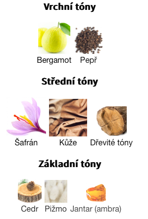 Základní tóny jsou Cedr, Pižmo a Jantar (ambra).