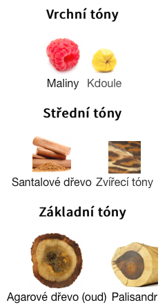 Základní tóny jsou Agarové dřevo (oud) a Palisandr.
