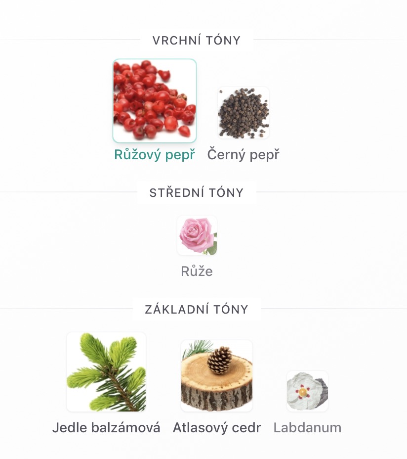 Vrchní tóny jsou Růžový pepř a Černý pepř;