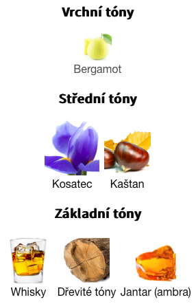 Základní tóny jsou Whisky, Dřevité tóny a Jantar (ambra).