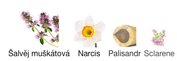 Vonné složky Šalvěj muškátová, narcis, Palisandr, Sclarene