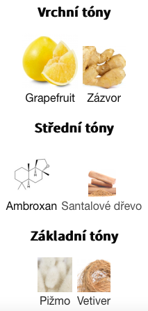 Střední tóny jsou Ambroxan a Santalové dřevo
