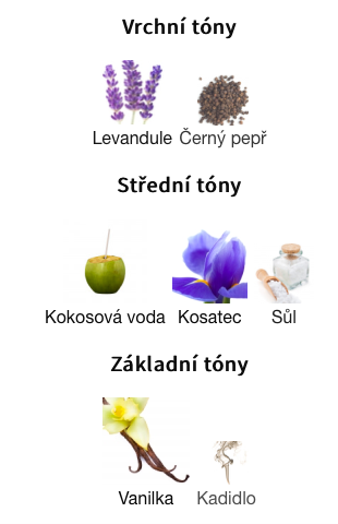 Střední tóny jsou Kokosová voda, Kosatec a Sůl ;