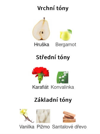 Vrchní tóny jsou Hruška a Bergamot;