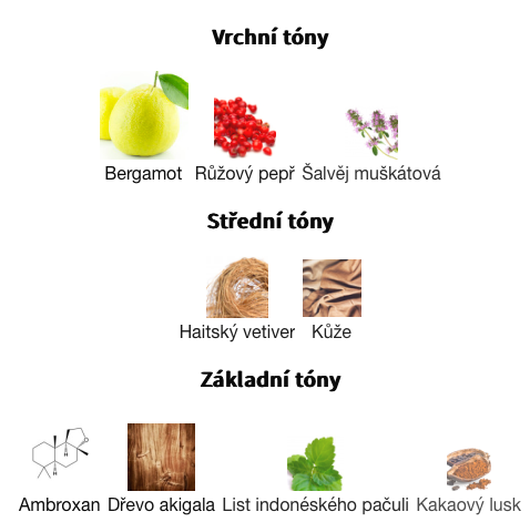 Vrchní tóny jsou Bergamot, Růžový pepř a Šalvěj muškátová