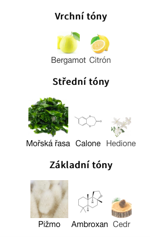 Střední tóny jsou Mořská řasa, Calone a Hedione
