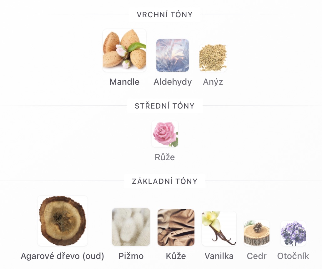 Vrchní tóny jsou Mandle, Aldehydy a Anýz;