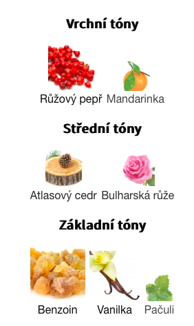 Vrchní tóny jsou Růžový pepř a Mandarinka