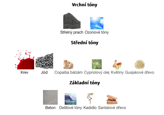 Vrchní tóny jsou Střelný prach a Ozonové tóny;