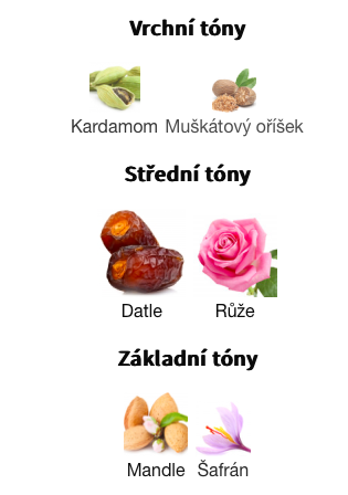 Vrchní tóny jsou Kardamom a Muškátový oříšek;