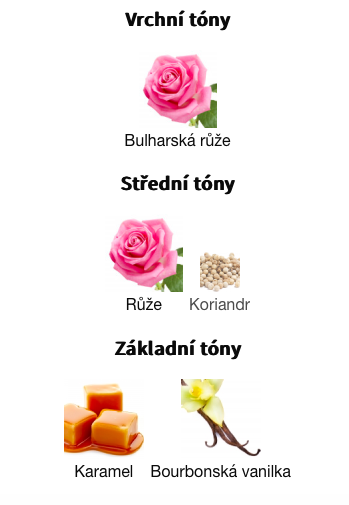 Střední tóny jsou Růže a Koriandr