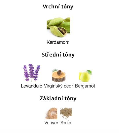 Střední tóny jsou Levandule, Virginský cedr a Bergamot